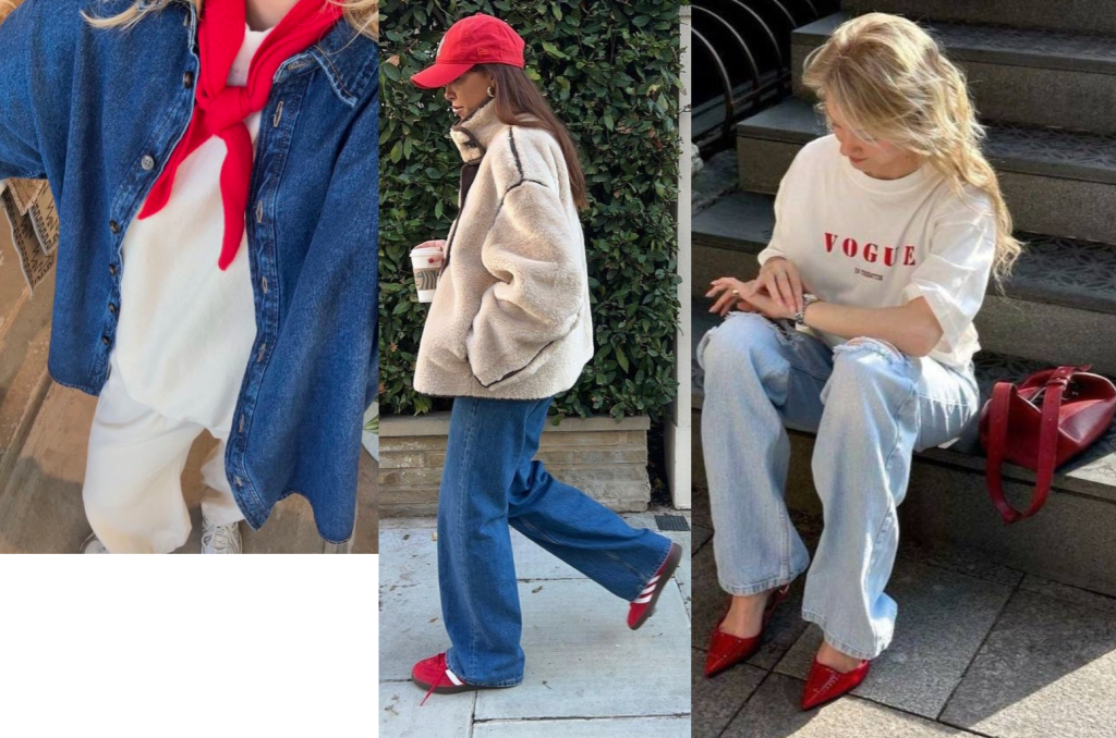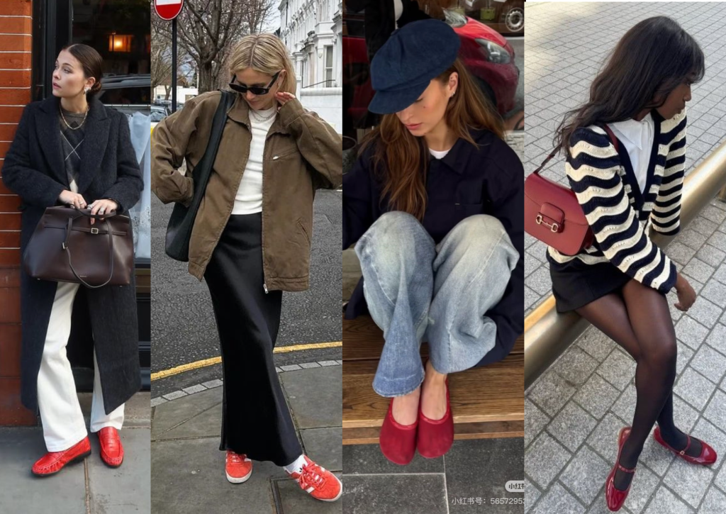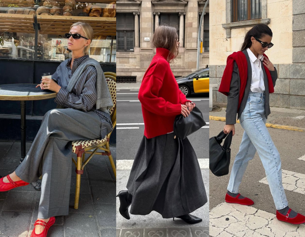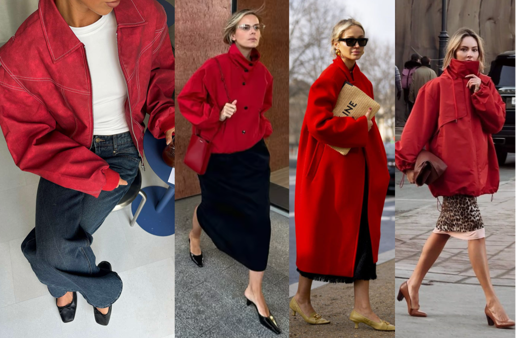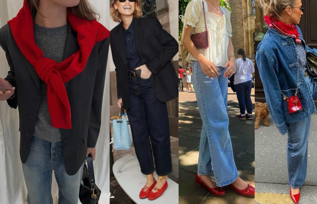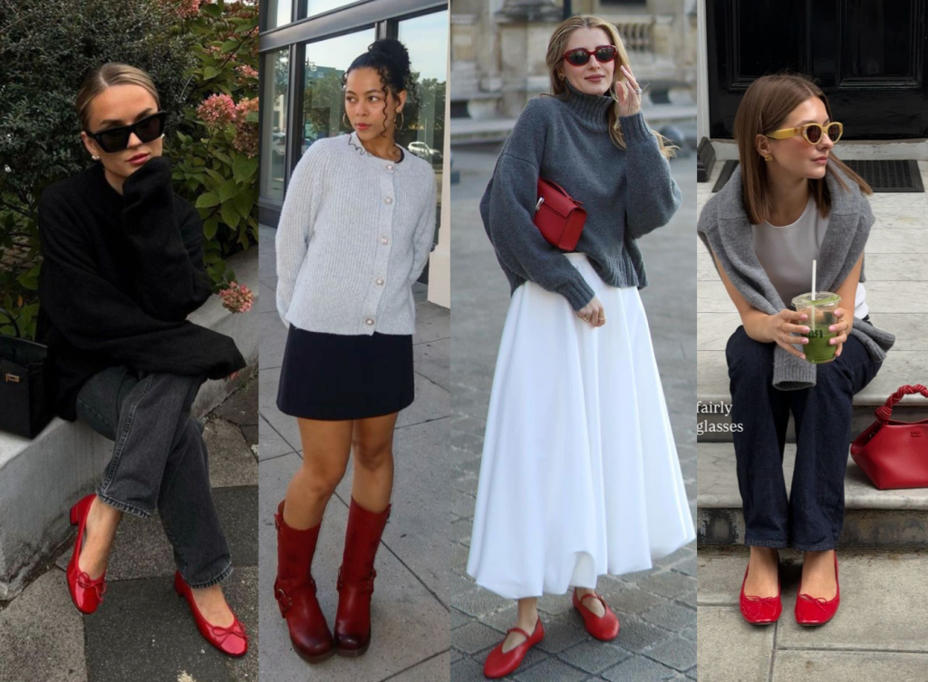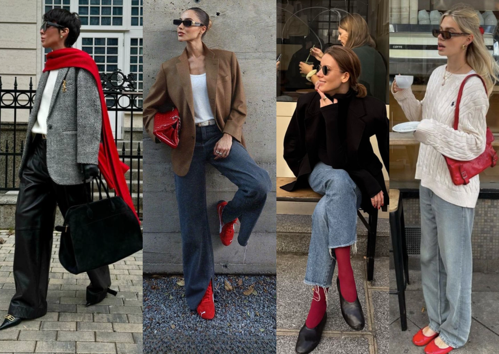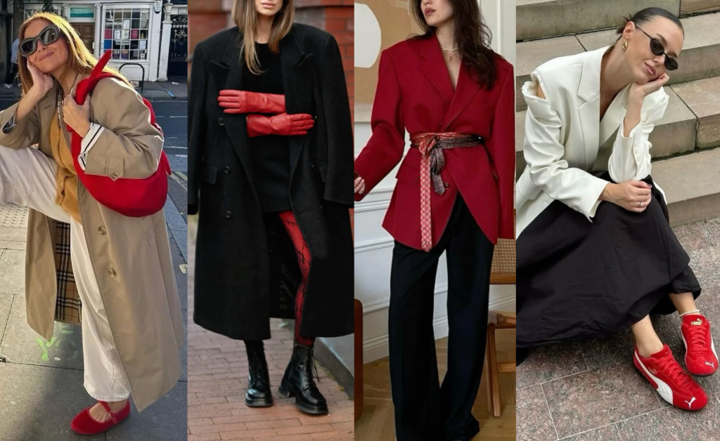 From classic pumps to ballet flats or even sneakers, red footwear adds personality without overwhelming your outfit.