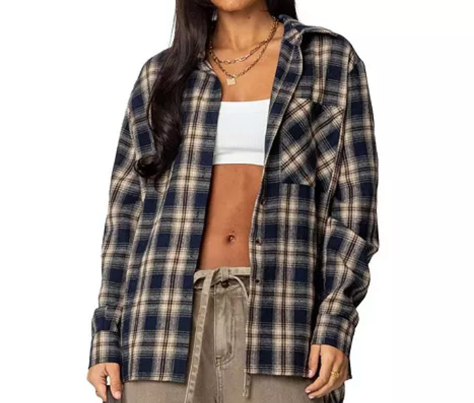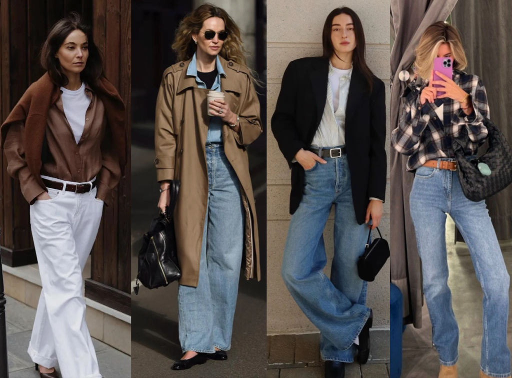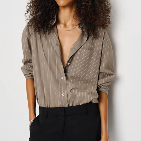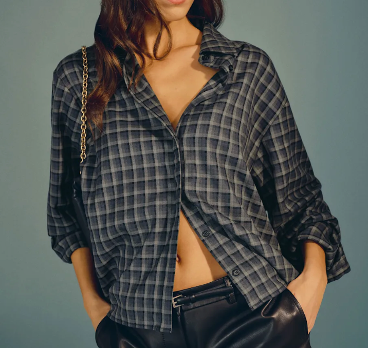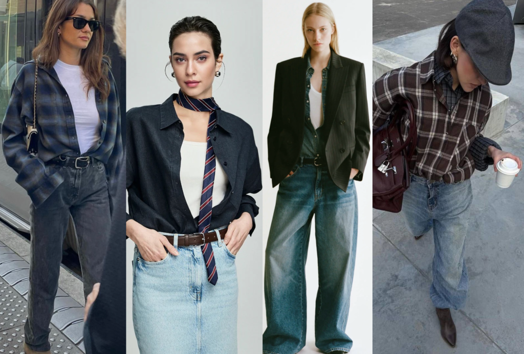 A basic base layer such as a classic white tee becomes instantly elevated with a loosely tucked button up. This can be followed up by a chunky outer layer like an oversized blazer, barn jacket, chunky cardigan or denim jacket.