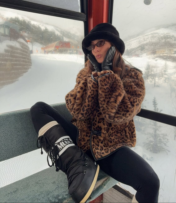 Faux-fur jackets, trim hoods, and fuzzy accessories bring instant warmth and luxury to any après-ski look. Choose cream, chocolate, or icy-gray tones for a timeless alpine aesthetic.