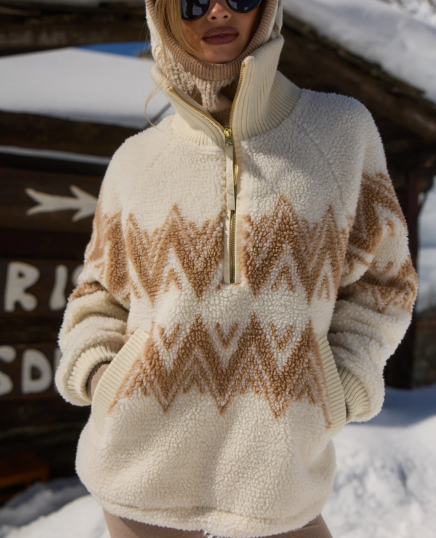 Oversized turtlenecks, Fair Isle sweaters, and textured knit cardigans are essentials in any après-ski wardrobe. They’re warm, relaxed, and perfect for layering.